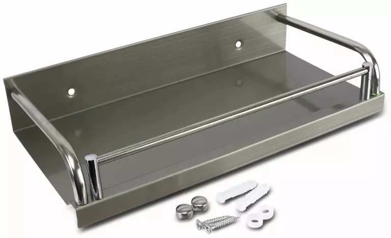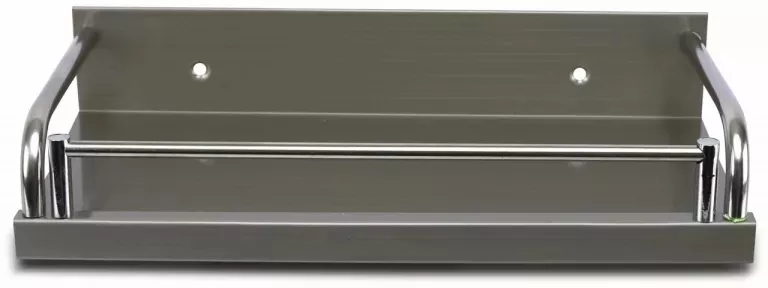 Nerezová polica vo vysokom lesku s hladkou kovovou základňou, ideálna na odkladanie korenín, omáčok, byliniek, pohárov atď.