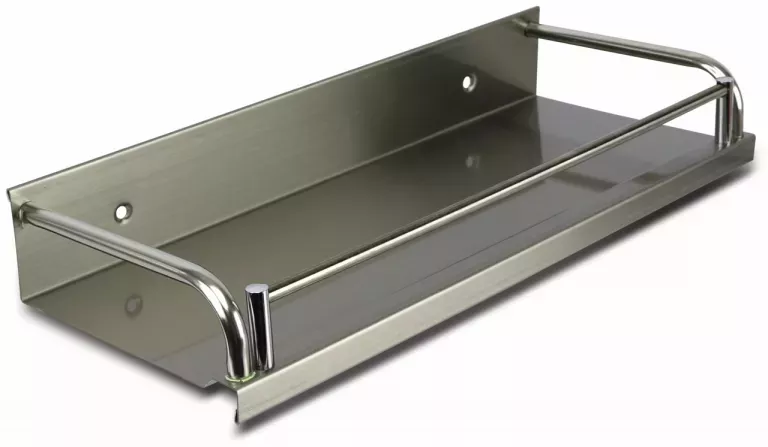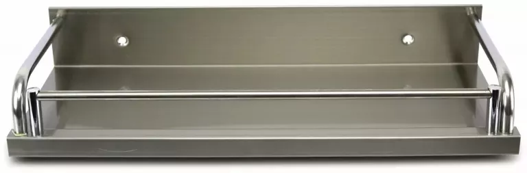 Nerezová polica vo vysokom lesku s hladkou kovovou základňou, ideálna na odkladanie korenín, omáčok, byliniek, pohárov atď.