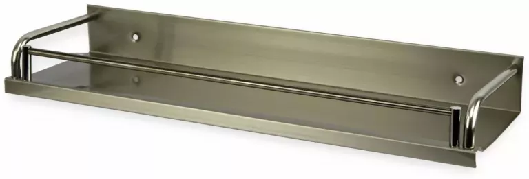 Nerezová polica vo vysokom lesku s hladkou kovovou základňou, ideálna na odkladanie korenín, omáčok, byliniek, pohárov atď.