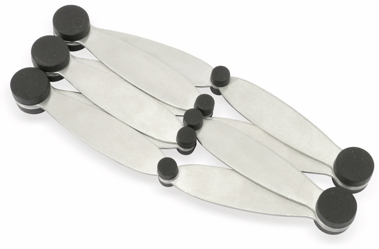 Flexibilná podložka pod hrnce, pekáče alebo podnosy. Individuálne nastaviteľná veľkosť a tvar. Bezpečný stojan vďaka 10 silikónovým nožičkám.