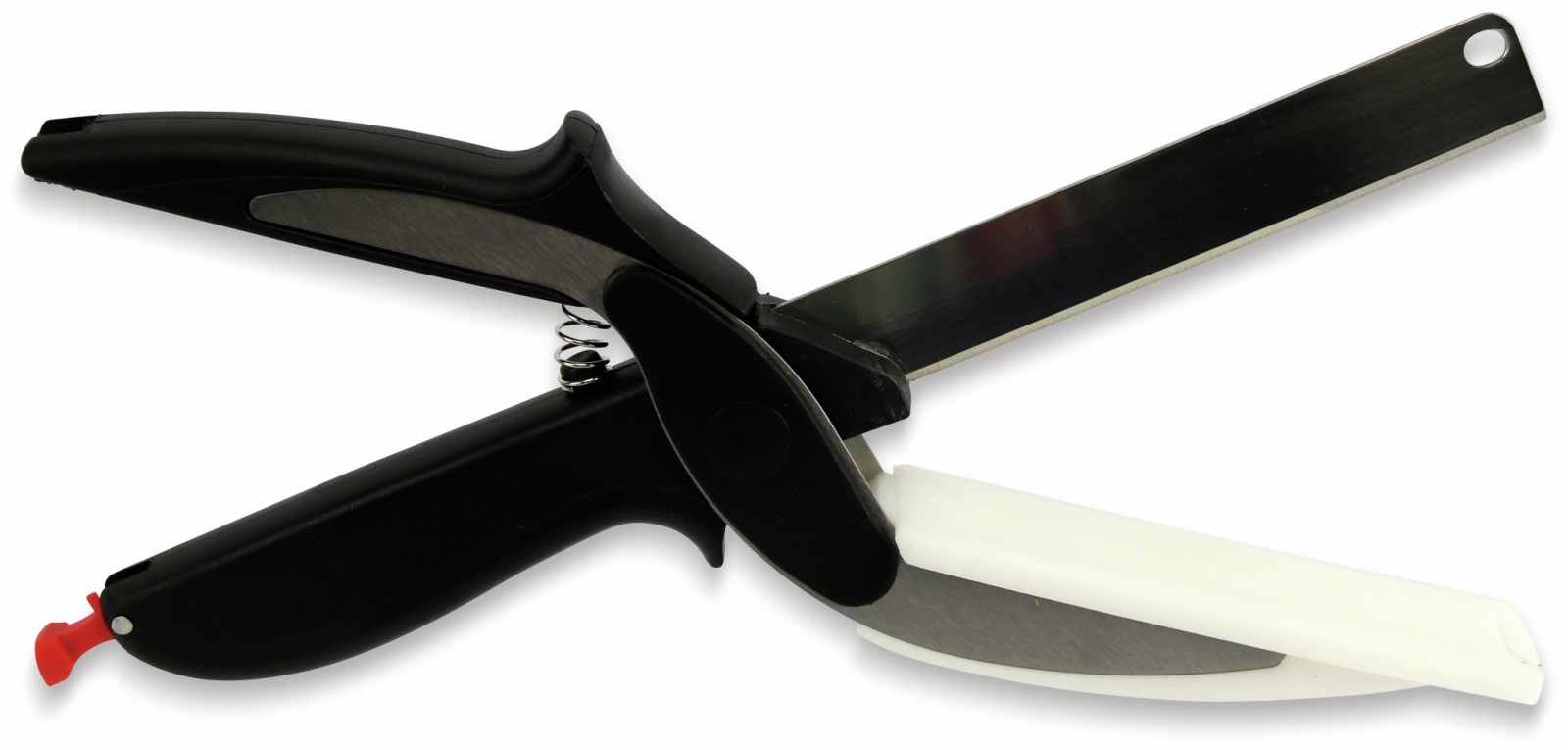 S kombináciou čepele a dosky na krájanie je možné bez problémov krájať zeleninu, ovocie, syry a kobásy. Nôž je vybavený bezpečnostným mechanizmom na rukoväti, ktorý udrží čepeľ a krájaciu dosku zatvorené. Výnimočná vychytávka do kuchyne, ktorá mimoriadne uľahčí veľa práce.