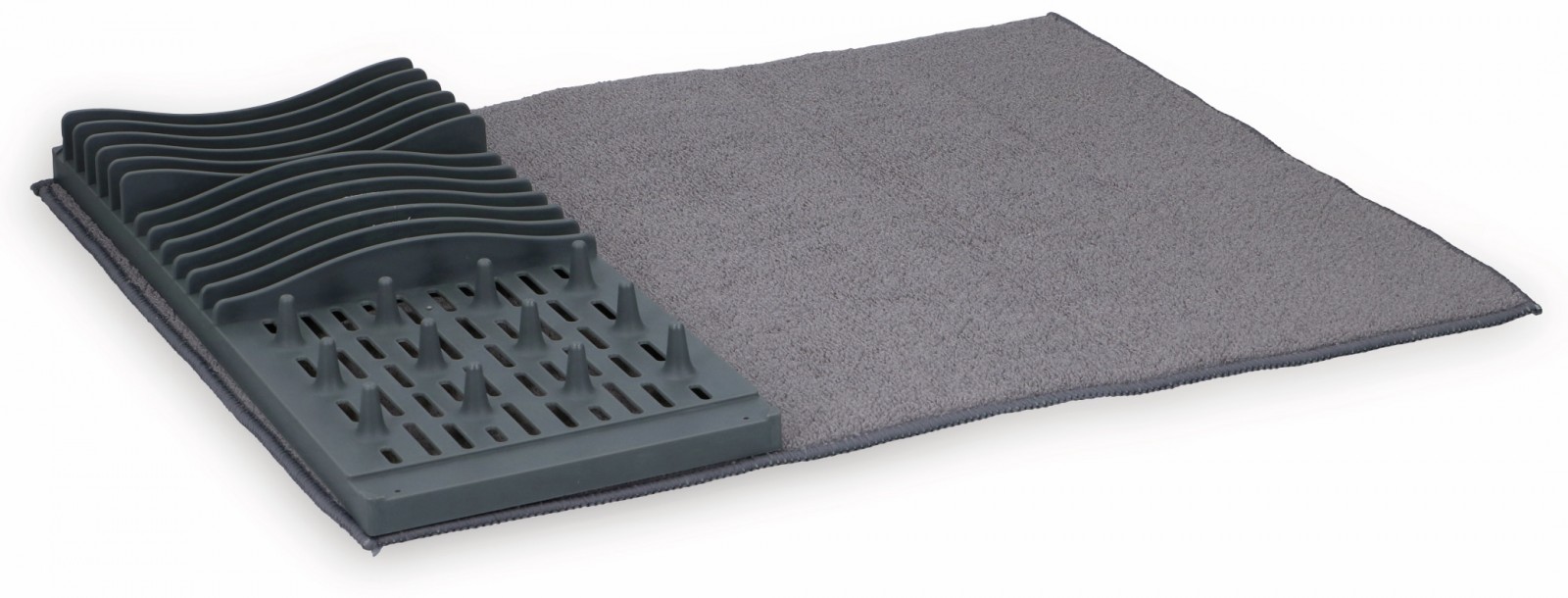 Užitočná odkvapkávacia mriežka s textíliou na odkladanie umytého riadu