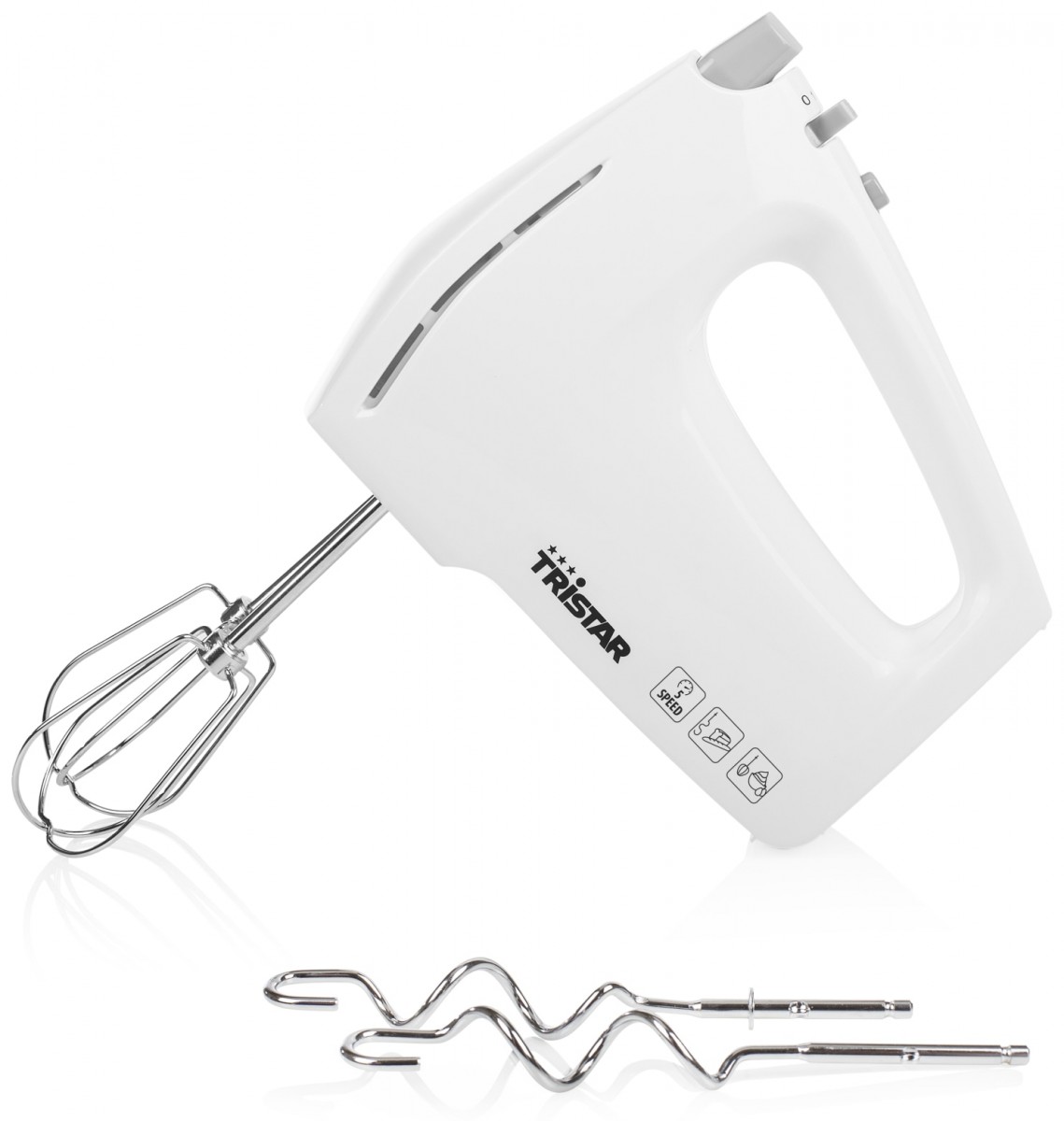 S ručným mixérom Tristar MX-4810 je príprava šľahačkového alebo tortového cesta jednoduchá. Pomocou tlačidla na vrchu mixéra si počas mixovania jednoducho zvolíte jeden z 5 rýchlostí alebo pomocou tlačidla turbo získate dodatočný výkon pre mimoriadne vzdušný výsledok. Balenie obsahuje 2 metly a 2 haky na cesto, ktoré sú vhodné do umývačky. Pre jednodúche vyberanie z mixera slúži tlačidlo.