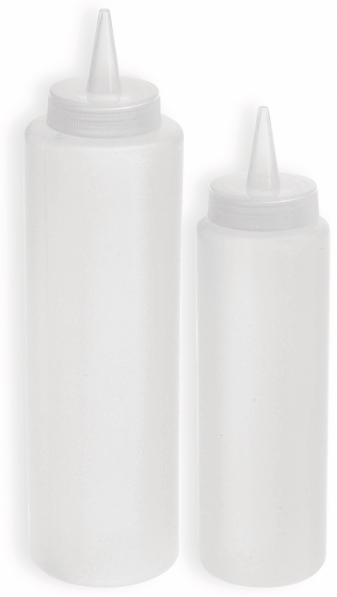 Praktické polyetylénové davkovacie fľaše vhodné na omáčky, ocot, olej atď. Vhodné pre potraviny a umývačky riadu.