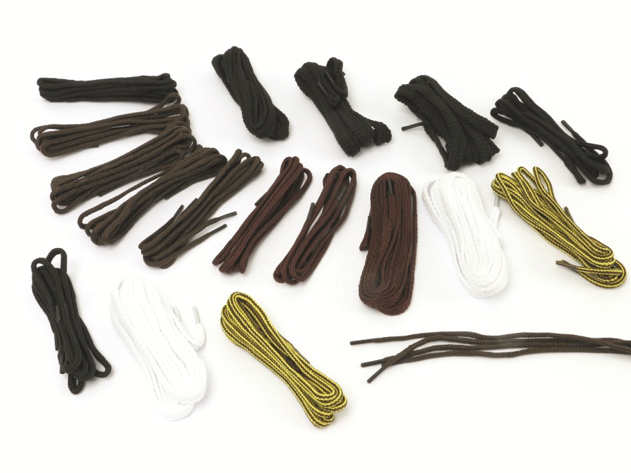 18 párov šnúrok do topáok vyrobené zo 100% polyesteru v rôznych dĺžkach a farbách.