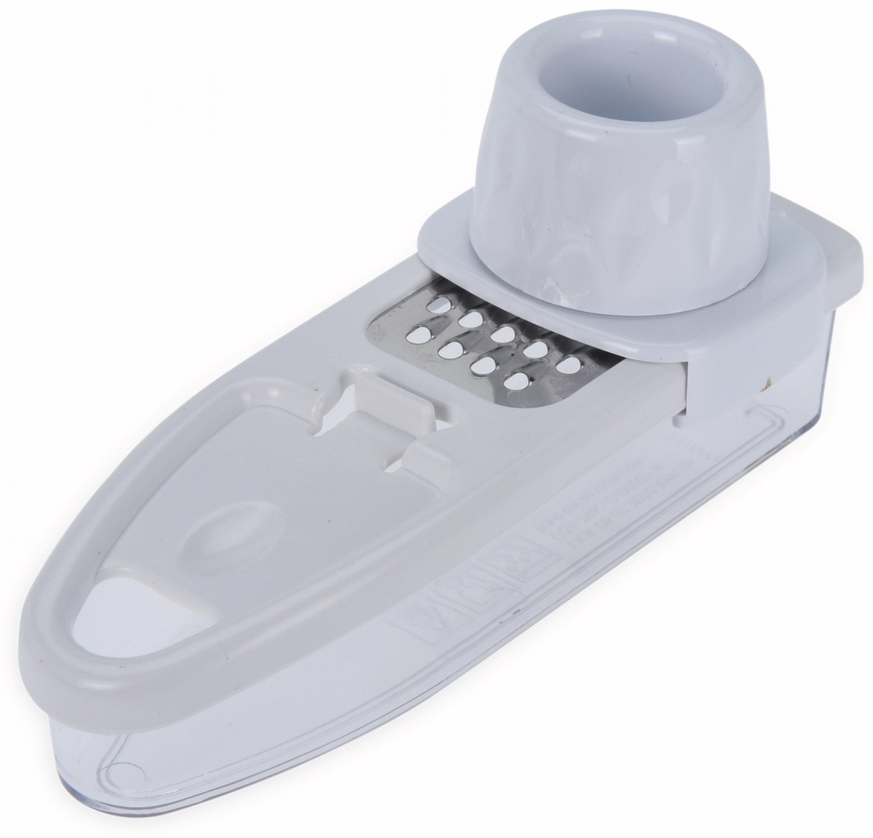 Šikovné strúhadlo s integrovaným posuvom a nádobou je vhodné na strúhanie cesnaku, zázvoru, muškatového orieška a pod.