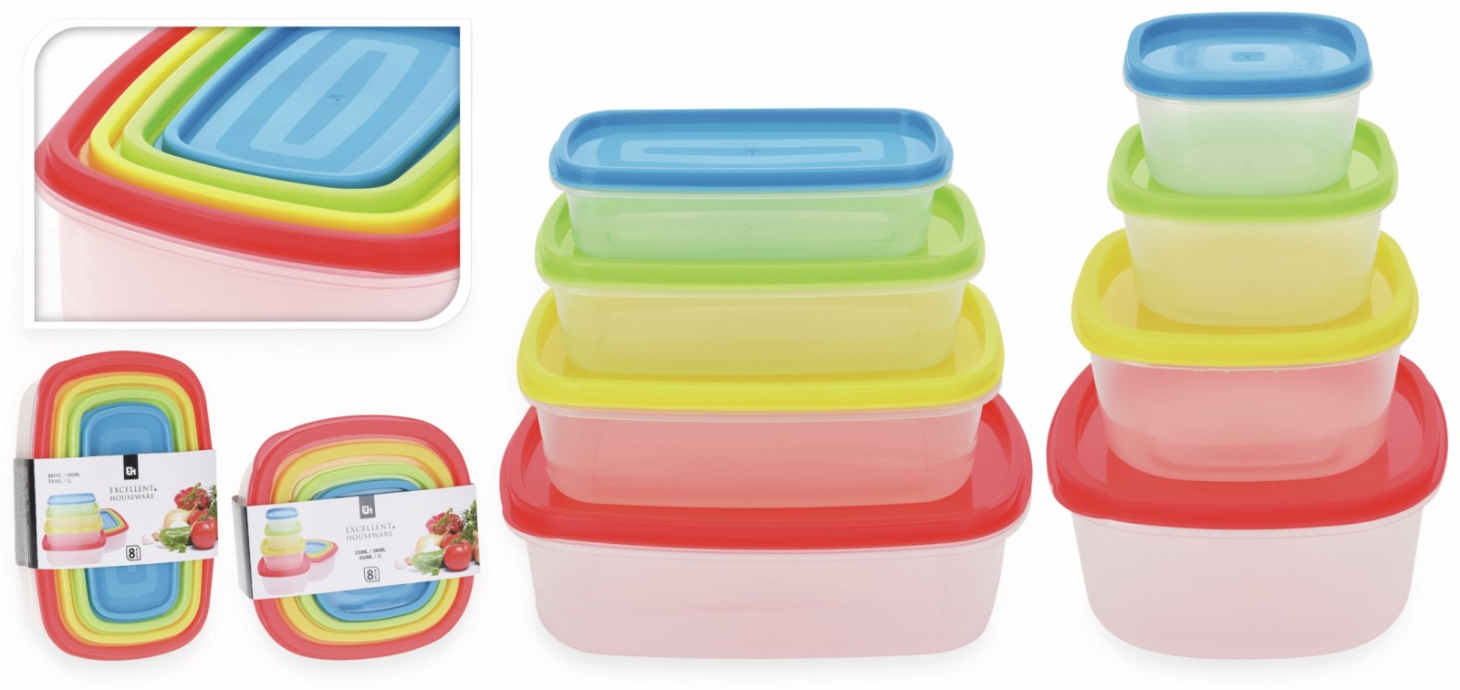 Praktilcká súprava, ktorá by nemala chýbať v žiadnej domácnosti. Súprava pozostáva zo 4 dóz s vrchnákmi. Vhodná do mikrovlnky, do max.850W/120°C a max 5min. Vhodné do umývačky riadu, bezpečné pre potraviny
