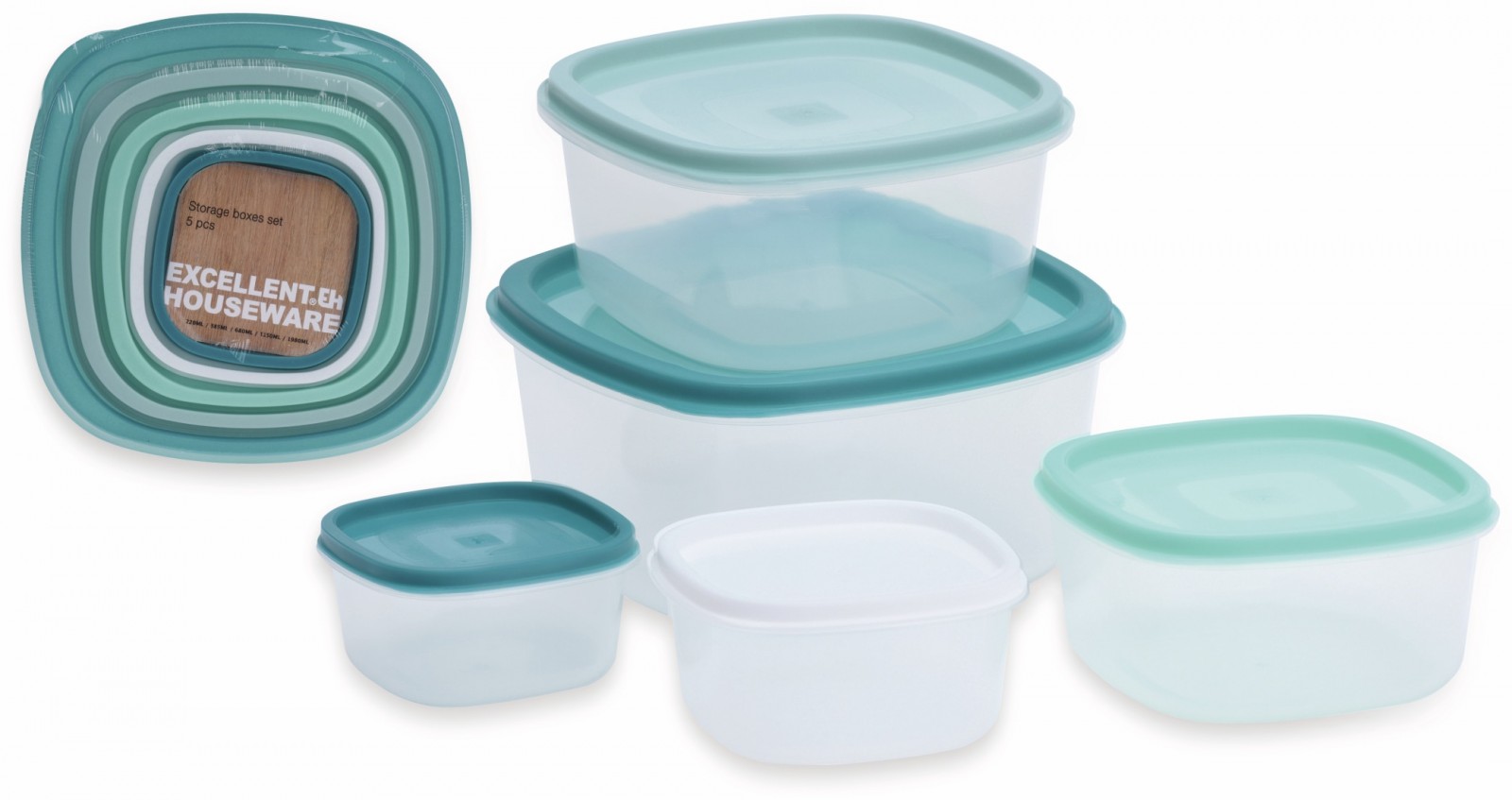 Praktilcká súprava, ktorá by nemala chýbať v žiadnej domácnosti. Súprava pozostáva zo 5 dóz s vrchnákmi. Vhodná do mikrovlnky, do max.850W/120°C a max 5min. Vhodné do umývačky riadu, bezpečné pre potraviny