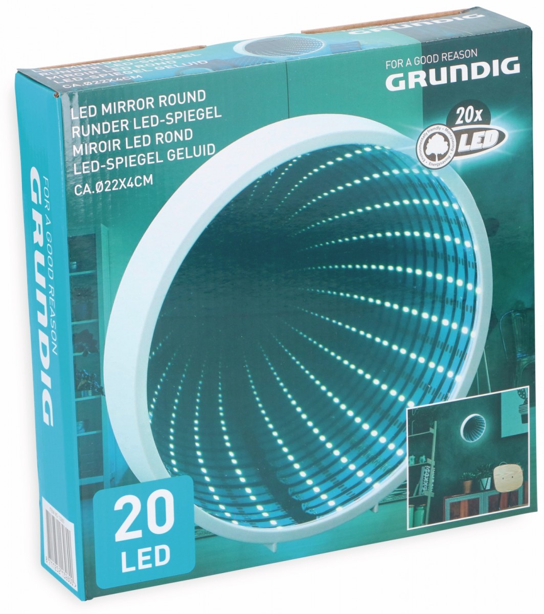 Nekonečné zrkadlo od GRUNDIGU sa stane ozdobou Vášho bytu. Vďaka LED svetelnému pásu, ktorý je pripevnený za zrkadlom, vzniká fascinujúci 3D svetelný efekt, ktorý zároveň predstavuje nepriame osvetlenie vášho obytného priestoru. Je možné ho zavesiť na stenu alebo postaviť.
